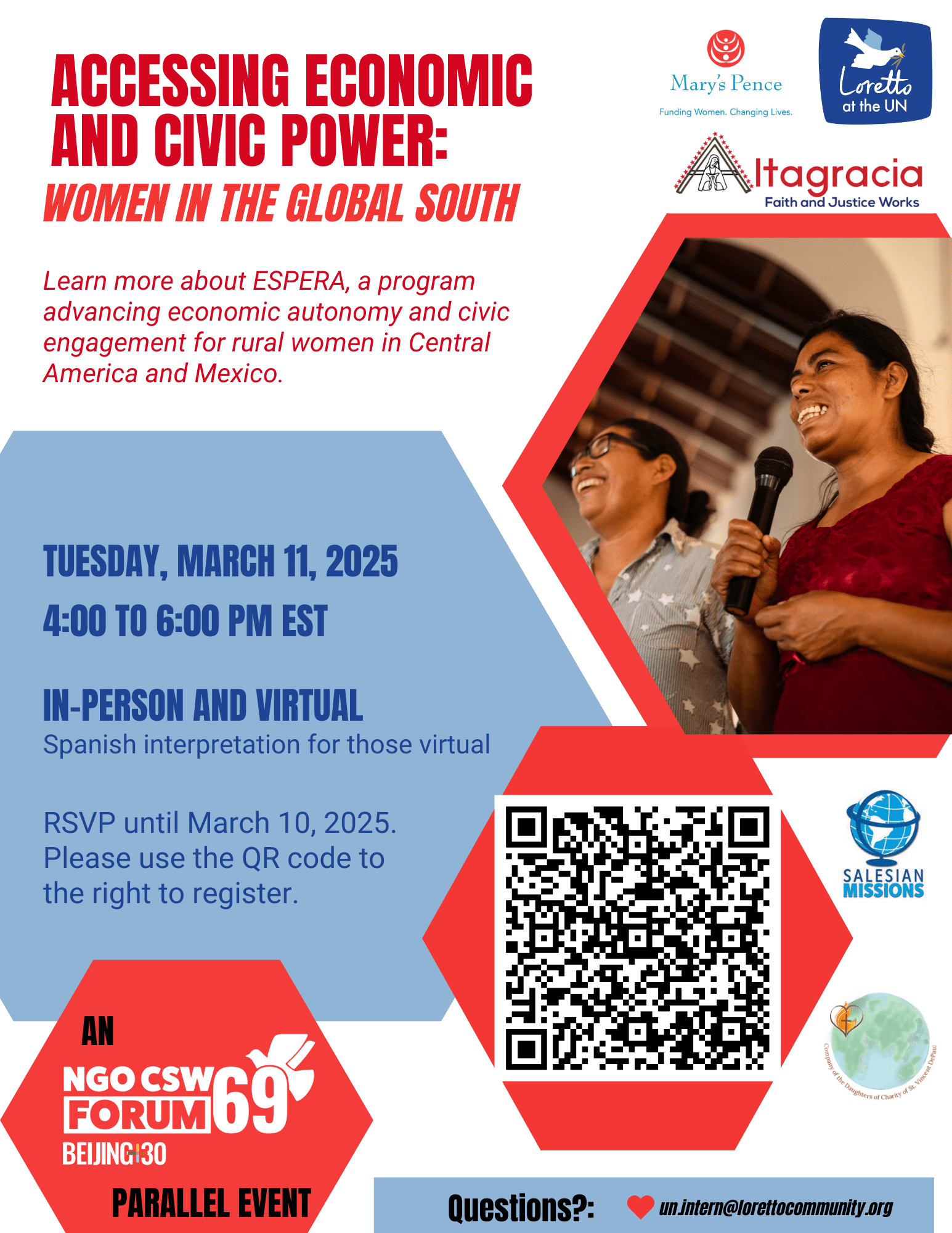 The following is a curated list of side and parallel events, coinciding with 69th session of the Commission on the Status of Women (CSW69), that are recommended by JCoR and our Religious community at the United Nations in New York. Please check back as this page will continue to be updated as CSW69 approaches.
